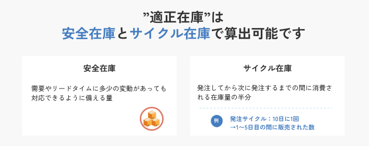 適正在庫 = 安全在庫 + サイクル在庫