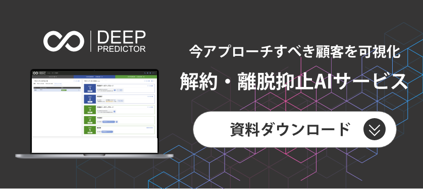 中でも「Deep Predictor」は、顧客離反の予兆を可視化し、実行可能な打ち手を導き出せる次世代型の支援ツールとして注目されています。データに基づいたアクションが、離反を「防げる課題」に変えるきっかけになるでしょう。