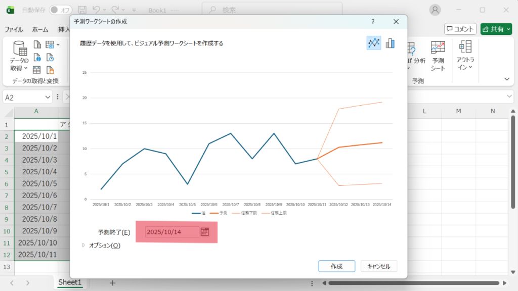この方法なら、専門的な数式や関数の知識がなくても、シート上で直感的に予測を作成可能です。
