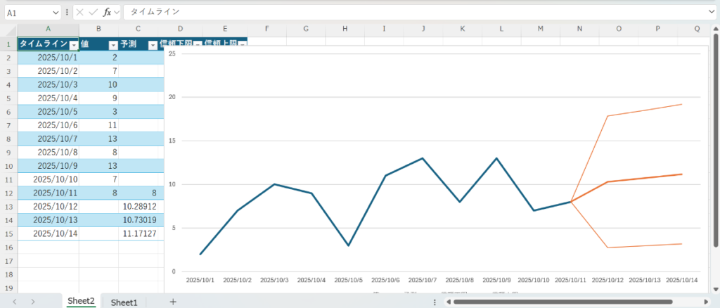シート上ではFORECAST.ETS関数や独自のstat関数を活用するケースもあります。