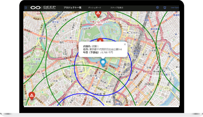候補物件やエリアがどれだけ売上が見込めるか予測できるツール