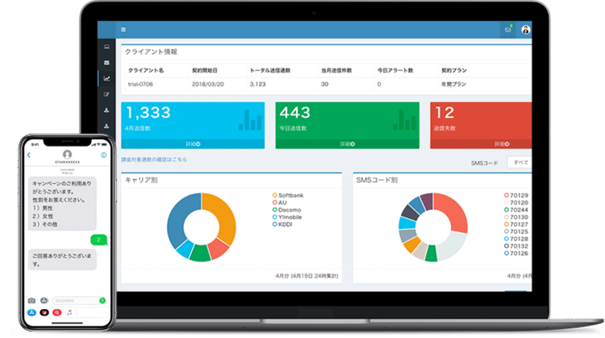 企業とユーザーを結びつける「絶対リーチ!SMS」はHTTPS(Web API)・SMPP(SMPP v3.4)のAPIを活用した独自のシステム連携方式で、様々なビジネスにご利用いただけます。ユーザーへのご案内などができるベーシックなプランから、紙DMの置き換えプラン、本人認証や決済まで実現するプランなどをご用意しております。