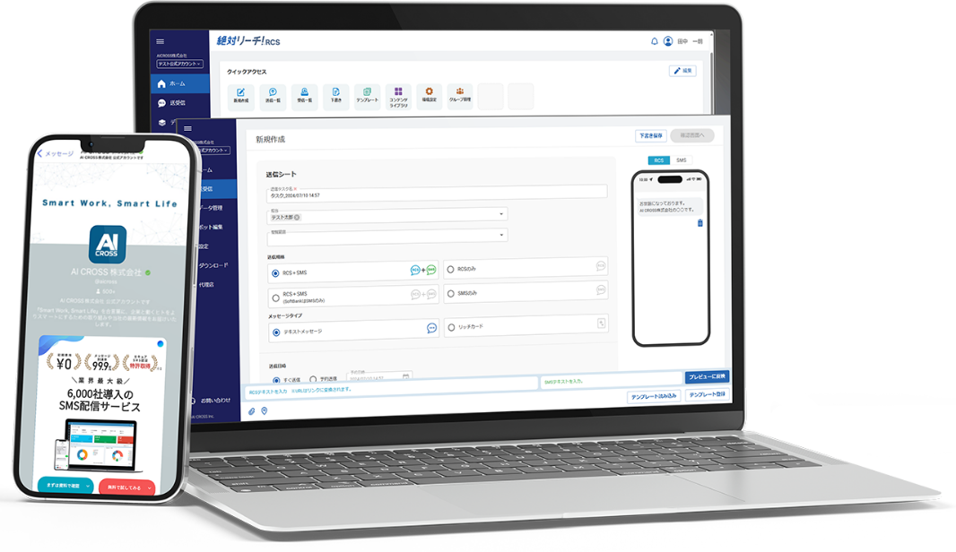 絶対リーチ!RCSは画像や動画などのリッチコンテンツの配信、ファイルの送受信、開封率の可視化、Webチャットのシナリオ構築機能などが搭載されており、ビジュアル訴求を活用したシームレスなURL誘導やクリック率向上施策にもご活用いただけます。Webチャットのシナリオ機能は簡単に構築が可能となっており、コミュニケーションの効率化を実現可能です。