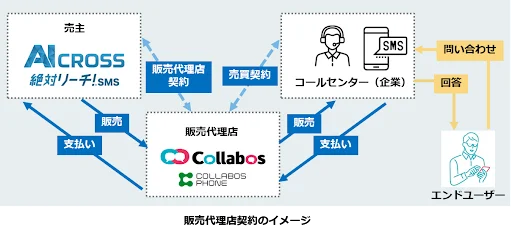 AI CROSS株式会社(本社:東京都港区、代表取締役CEO:原田典子、以下「AI CROSS」)は、株式会社コラボス(本社:東京都千代田区、代表取締役社長:茂木貴雄、以下「コラボス」)とSMS送受信サービス「絶対リーチ!SMS」の販売代理店契約を2023年7月13日に締結したことをお知らせします。